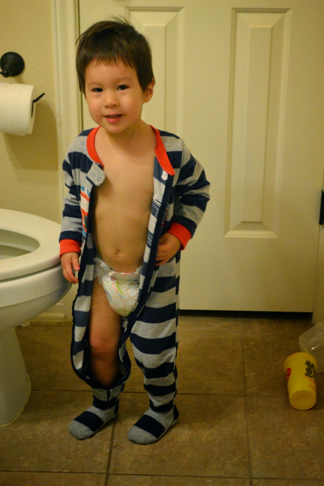 Nathan exercises his independence more and more these days. This morning I took him to the bathroom and proceeded to help him take off his jammies. He quickly said, "No, mommy, you stand over there, I do it." (Sometimes he's not so nice and will actually say, "You go away.") So sure enough, he took off his jammies,