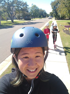 The days have been cool in the morning, but perfect in the afternoons, so we've been going on walks, scooter rides and bike rides almost every day.